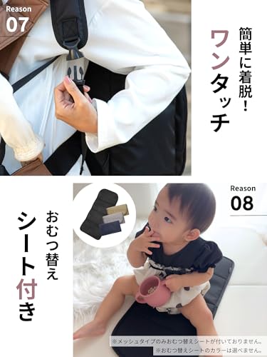 このマザーズリュックの最大の特徴は、ワンタッチバックルが付いているので、外すだけで抱っこ紐をしたままリュックが下せるという点です。